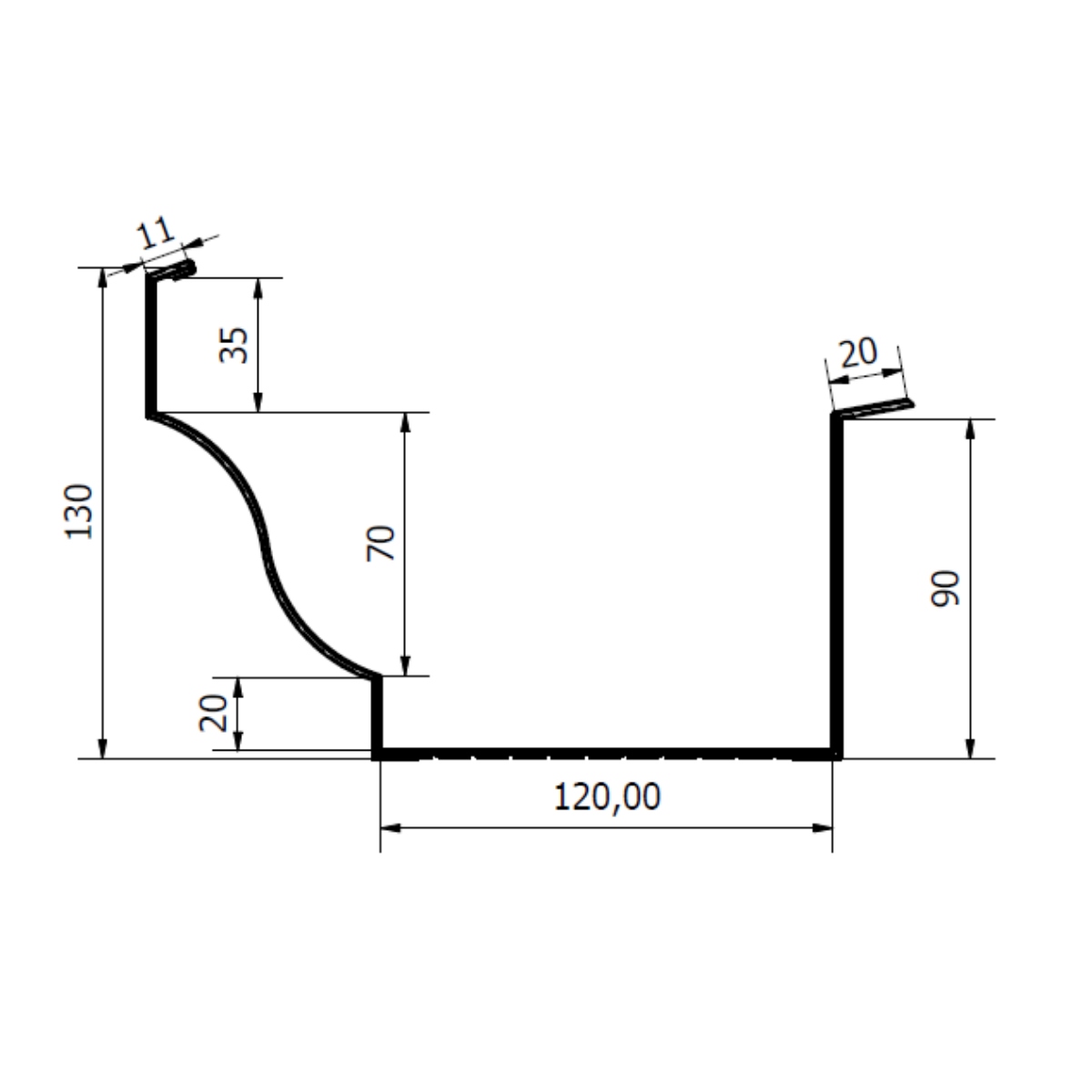 Canalón fabricado en largos a medida, reduce las uniones y por ende las perdidas y goteos. Con esta pieza se ofrece la posibilidad de obtener un producto moderno, tanto en sus características constructivas como en su diseño.